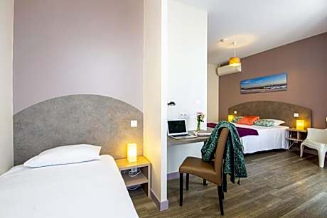 Located in Saujon, 18 miles from Saintes Train Station, CIT'HOTEL Le Commerce has accommodations with a garden, free private parking, a terrace and a restaurant. This 2-star hotel offers a bar. The hotel has family rooms. At the hotel, the rooms have a desk. Featuring a private bathroom with a shower and free toiletries, rooms at CIT'HOTEL Le Commerce also feature free WiFi, while some rooms also feature a patio. All rooms in the accommodation are equipped with a flat-screen TV and a hairdryer. Guests at CIT'HOTEL Le Commerce can enjoy an à la carte or a continental breakfast. Royan Train Station is 7 miles from the hotel, while Notre Dame Church is 7.8 miles from the property. La Rochelle - Île de Ré Airport is 44 miles away.