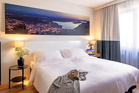 City Hotel Biel Bienne Free Parking is located 5 minutes from Lake Biel, close to the railway station and the city center and charming Old Town of Biel/Bienne. It offers free WiFi, free internet in all rooms and 1 free parking space per room on site. All rates include use of the fax and copy machine at the reception, of the internet workstation in the lobby. A bus stop can be found right in front of the City Hotel Biel Bienne Free Parking. All rooms have been completely renovated in 2024 in a modern style with boxspring bed.