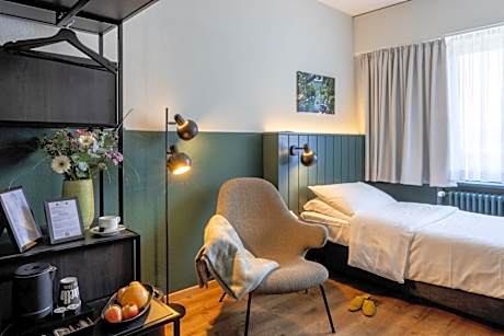 Providing free toiletries, this single room includes a private bathroom with a shower and a hairdryer. The single room provides a tea and coffee maker, a wardrobe, a safe deposit box, a flat-screen TV with cable channels, as well as city views. The unit offers 1 bed.