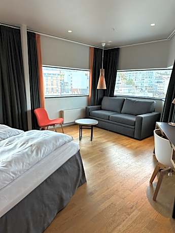 Featuring a sky bar and rooftop terrace on the 11th-floor, this central Tromsø hotel is located at the harbor, overlooking Tromsø Sound and the Arctic Cathedral. It features free WiFi, a lounge and on-site dining. Contemporary furnishings are featured in all rooms at Clarion Hotel The Edge, as well as a large flat-screen TV and desk. The bathrooms include a shower and hairdryer. The hotel restaurant The Social Bar & Bistro has a menu designed to offer you classic bistro dishes with a modern twist. Whether you are looking for a light bite or a hearty meal, we have something for everyone. Polaria Aquarium and the 19th-century wooden Tromsø Cathedral are both within 984 feet of the hotel. Tromsø Airport is 3.7 mi away.