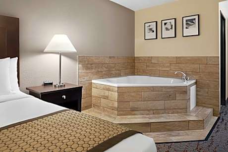 The Baymont Inn & Suites Belleville Airport Area hotel is conveniently located off Interstate 94, just eight miles from the Detroit Metropolitan Wayne County Airport and five miles from the Willow Run Airport. This Belleville, MI hotel is near many points of interest including the Arborland Mall, Belleville Lake, the Canton Sports Center, Crosswinds Marsh Wetlands Interpretive Preserve and the Henry Ford Museum. The Wayne County Fairgrounds, Westland Center mall and the Yankee Air Museum are also close to the hotel. Superior amenities and features are offered like: free USA Today, free wireless high-speed Internet access. A year-round, indoor heated pool is available. Breakfast has hot and cold options featuring eggs, meat, yogurt and fresh fruit, cereal and more, including your choice of hot waffle flavors! Business travelers to this Michigan hotel will appreciate conveniences like multiple telephone lines with voice mail and access to copy and fax services. There are also meeting and banquet rooms available. Every room comes equipped with free movie channels, irons and ironing boards. All rooms have microwaves and refrigerators. Hot tub rooms are also available. The hotel also offers a guest laundry area. Pets are welcome for a small nightly fee.