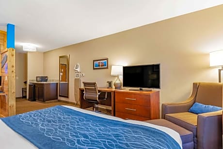 Located in Ludington, Michigan, just minutes from Historic White Pine Village, this hotel offers a heated indoor pool and hot tub. A gym is located on site. All guest rooms include free WiFi. Each comfortably furnished room at Comfort Inn & Suites Ludington near US-10 features cable TV. Tea and coffee making facilities are provided in each bright en suit accommodations. A seating area is included. A 24-hour reception is offered at Ludington Comfort Inn. A business center complete with fax and photocopying services is available. Laundry facilities is located on site. Big Sable Point Lighthouse is 5 minutes’ drive from this hotel. Serving traditional fare such as roasted chicken and cottage pie, Jamesport Brewing Company is 2 miles away.