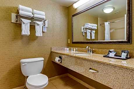 Comfort Inn Warner Robins - Robins AFB - Robins Air Force Base Area provides easy access to Interstate 75 and is close to many area attractions. The Museum of Aviation Flight and Technology Center, Robins Air Force Base, Middle Georgia Regional Airport and the Georgia National Fairgrounds and Agricenter are minutes from this Warner Robins, GA hotel. Agrirama, Georgia's Museum of Agriculture and Historic Village, is just a short drive away. This living history museum showcases rural pioneer life and offers a number of notable attractions like the Peanut Museum, the Historic Tift House and a Vulcan Iron Works train. A number of festivals and special events are held at this venue throughout the year. Golfing enthusiasts can enjoy being near courses like the Landings Golf Club and the International City Golf Course, while fans of the outdoors can delight in the area's many recreation facilities. Several entertainment venues, retailers and restaurants can be found nearby. The hotel is located in the business area of Warner Robins adjacent to Starbucks and Taco Bell. As a guest of this Warner Robins, GA hotel, you can enjoy full-service amenities and features like free wireless high-speed Internet access, free weekday newspaper and an exercise room. Enjoy our free hot breakfast featuring eggs, meat, yogurt, fresh fruit, cereal and more, including your choice of hot waffle flavors! All of our spacious and well-appointed guest rooms have microwaves, refrigerators, coffee makers, flat-screen televisions, curved shower rods, hair dryers, irons, ironing boards, voice mail and cable television with free HBO. Select rooms also have desks, hot tubs and kitchen facilities. Connecting rooms can be requested. This Georgia hotel has an on-site business center that provides guests with access to conveniences like copy and fax service. Laundry facilities are located on the premises and valet cleaning service is available. Ample parking is provided and can accommodate most cars, trucks or busses.