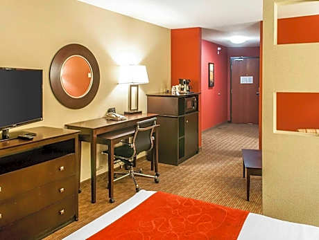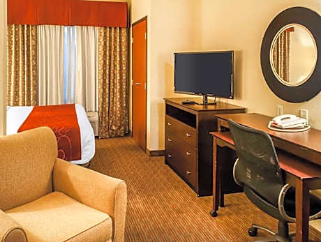 Comfort Suites Gallup East Route 66 and I-40 is located in Gallup. Featuring a fitness center, the 3-star hotel has air-conditioned rooms with free WiFi, each with a private bathroom. The hotel provides an indoor pool, spa center and a 24-hour front desk. At the hotel, all rooms come with a desk. All guest rooms at Comfort Suites Gallup East Route 66 and I-40 are equipped with a seating area and a flat-screen TV with satellite channels. A buffet, continental or American breakfast is available at the property. A business center and vending machines with snacks and drinks are available on site at the accommodation.