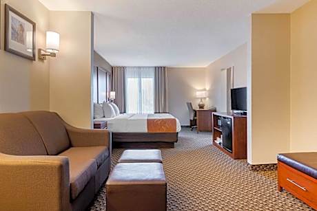 The Comfort Suites hotel is located less than 0.6 mi from Interstate 196, 2 mi from downtown. Guests can enjoy the complimentary breakfast, and other full-service amenities including free coffee, weekday newspaper, fitness center and heated pool. Laundry facilities are also available on the property. The hotel provides guests with conveniences like free high-speed Internet access and a business center with free Internet access. There is a meeting room that can accommodate up to 26 people. Every guest room at the property comes equipped with a refrigerator, microwave, coffee makers, irons, ironing boards and cable television. This hotel is close to many area attractions, including Gingerman Raceway, Van Buren State Park and the Kal-Haven Trail.
