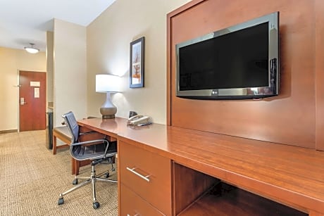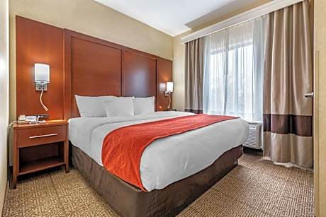 Hotel Comfort Suites Elkhart South położony jest przy autostradzie Indiana East-West Toll Road, w samym sercu regionu Amish Country w północnej Indianie. Hotel znajduje się w pobliżu Muzeum Sztuki Amerykańskiej Midwest, Narodowego Muzeum Kolejnictwa New York Central Railroad, muzeum RV/MH Hall of Fame oraz Muzeum Historycznego Hrabstwa Elkhart, które mieści się w historycznym Rush Memorial Center. Miasto Elkhart jest pełne producentów kamperów, dealerów, punktów serwisowych i sprzedawców detalicznych produktów związanych z kamperami. W pobliżu znajduje się wiele atrakcji rekreacyjnych, a miasto organizuje wiele corocznych wydarzeń i festiwali przez cały rok. W pobliżu hotelu znajdują się sklepy. W okolicy znajduje się wiele restauracji, barów koktajlowych i lokali rozrywkowych. Goście tego hotelu w Elkhart w stanie Indiana mogą korzystać z takich udogodnień, jak bezpłatny szybki dostęp do Internetu, bezpłatna kawa i bezpłatne połączenia lokalne. Śniadanie jest pełne opcji. Ciesz się bezpłatnym, gorącym śniadaniem, które obejmuje jajka, mięso, jogurt, świeże owoce, płatki śniadaniowe i wiele innych produktów, w tym wybór gorących gofrów! Jeśli wyjeżdżasz wcześniej, na dwie godziny przed śniadaniem dostępna jest torba Your Suite Success Grab & Go. Po intensywnym dniu spotkań lub ekscytującym zwiedzaniu z przyjemnością zrelaksujesz się w krytym, podgrzewanym basenie i hot tub. Koniecznie skorzystaj z hotelowej siłowni. Podróżujący służbowo docenią udogodnienia, takie jak ogólnodostępny komputer z dostępem do internetu oraz kserokopiarka i faks. Na terenie obiektu znajduje się zaplecze bankietowe i konferencyjne. Wszystkie pokoje wyposażone są w lodówki, kuchenki mikrofalowe, ekspresy do kawy, wygięte drążki prysznicowe, biurka, puchowe poduszki, rozkładane sofy, telewizory z płaskim ekranem, suszarki do włosów, żelazka, deski do prasowania, materace z poduszką i telewizję kablową. Urządzenia elektroniczne można ładować za pomocą ładowarek z gniazdkami AC i USB, które znajdują się we wszystkich pokojach. Dodatkowo, niektóre pokoje wyposażone są w wanny z hydromasażem. Dla Państwa wygody na terenie obiektu znajduje się pralnia.