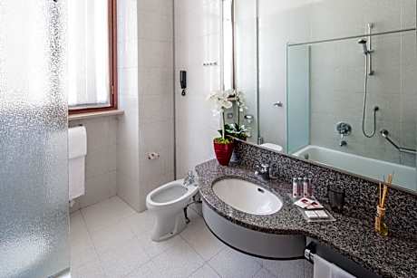 Hotel Concord is 328 feet from Porta Nuova, and a short walk from the pedestrian shopping district in Turin. The hotel offers air-conditioned rooms with a mini-bar, and a bar selling Italian and international drinks. With classic décor, rooms include a flat-screen satellite TV and a spacious, fully equipped bathroom. Your day at the Concord begins with a buffet breakfast including a selection of sweet and savory food. A 10-minute walk will take you to the Piazza Castello main square. Turin’s Via Roma shopping street is 984 feet away. License Number(s): 001272-ALB-00207, IT