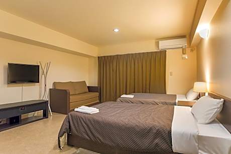 Experience an abundance of unparalleled facilities and features at Condominium Hotel Monpa. Share your photos and respond to emails at your convenience, thanks to the free Wi-Fi internet access offered by hotel. Experience the wonders of Okinawa Main island with ease by utilizing the services provided at car hire. Visitors can take advantage of complimentary parking directly at the hotel.Traveling with minimal luggage is achievable at Condominium Hotel Monpa due to the hotel's laundromat ensuring your garments stay fresh.The hotel maintains a completely smoke-free zone, providing a breathable atmosphere.Smoking is limited to specified smoking zones. Each accommodation at Condominium Hotel Monpa is thoughtfully created and adorned to provide visitors with a comfortable, home-like atmosphere. In certain rooms, the hotel offers linen service, blackout curtains and air conditioning for guest convenience and satisfaction.At Condominium Hotel Monpa, the uniquely tailored rooms provide a configuration choice resembling a balcony or terrace. In select rooms, guests can enjoy a touch of amusement with the availability of television for their entertainment.Rest assured, in a few chosen rooms, the presence of a refrigerator can be found.Maintain your cleanliness and comfort using a hair dryer and toiletries available in select guest restrooms. Throughout the day and evening, grab a bite to eat from hotel's self-service vending machines whenever you please. License Number(s): 第27‐5号