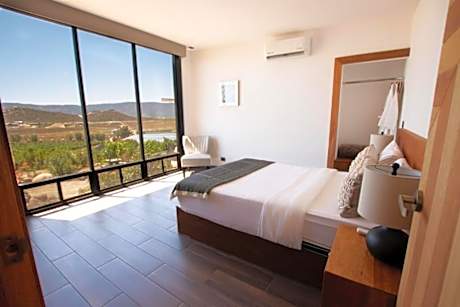 Contemplacion Resort & Spa has a fitness center, garden, a shared lounge and terrace in Valle de Guadalupe. Featuring an outdoor swimming pool, the 5-star hotel has air-conditioned rooms with free WiFi, each with a private bathroom. The hotel has a hot tub and room service. At the hotel, the rooms come with a patio. Rooms are equipped with a coffee machine, while some rooms contain a kitchen with a fridge and a microwave. The rooms in Contemplacion Resort & Spa are equipped with a TV and a hairdryer. An American breakfast is available at the accommodation. Tijuana International Airport is 61 miles from the property.