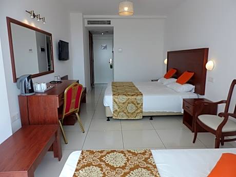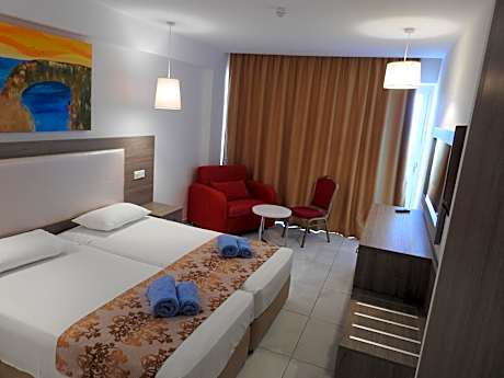Located in Ayia Napa, a 11-minute walk from Pantachou Beach, Corfu Hotel provides accommodations with a seasonal outdoor swimming pool, free private parking, a fitness center and a garden. This 4-star hotel offers a shared lounge, room service and free WiFi. The hotel has a terrace and city views, and guests can enjoy a meal at the restaurant or a drink at the bar. At the hotel each room comes with air conditioning, a seating area, a flat-screen TV with satellite channels, a safety deposit box and a private bathroom with a shower, free toiletries and a hairdryer. Rooms are equipped with an electric tea pot, while certain rooms include a balcony and others also offer sea views. Guest rooms will provide guests with a fridge. Breakfast is available, and includes buffet, continental and vegetarian options. Corfu Hotel has a playground. Speaking Bulgarian, Greek, English and French, staff are willing to help at the 24-hour front desk. Cyprus Casinos - Ayia Napa is a 12-minute walk from the accommodation, while Agia Napa Monastery is 0.6 miles away. Larnaca International Airport is 32 miles from the property.