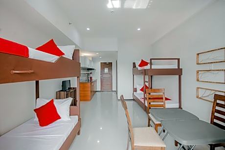 The dormitory room features air conditioning, a seating area, as well as a private bathroom boasting a walk-in shower and a bidet. The dormitory room provides a dining area, an electric kettle, a tiled floor, as well as a flat-screen TV with cable channels. The unit has 4 beds.