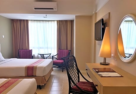 Corus Paradise Resort provides flawless service and all the necessary facilities for visitors.Remain linked during your visit by utilizing the complimentary internet access available. Prior to your check-in date, you can arrange airport transportation services, guaranteeing a seamless and efficient experience for both arrival and departure.Services offered by taxi and car hire at the resort ensure effortless exploration of Port Dickson. The resort offers complimentary parking for guests who arrive with their own mode of transport. Effortlessly plan your daily activities and travel requirements with luggage storage and safety deposit boxes provided by the front desk services. Securing top-notch tickets and reserving prime dining spots become effortless through assistance from the resort's tours.Repeatedly enjoy your best-loved attire with the aid of the laundry service available at Corus Paradise Resort. During leisurely days and evenings, in-room amenities such as room service and daily housekeeping enable you to maximize your stay in the room.For minor or impromptu requirements, the convenience stores can promptly cater to them without the necessity of stepping out from the resort. The resort is completely smoke-free. Crafted for coziness, every guestroom provides an array of features, guaranteeing a tranquil night's sleep while maintaining the level of comfort.For a more enjoyable stay, select rooms at resort are equipped with linen service, blackout curtains and air conditioning.At Corus Paradise Resort, guests can choose from a variety of room configurations, some of which feature separate living room and balcony or terrace.For certain chosen rooms, guests can enjoy in-room amusement like daily newspaper, television and cable TV as a part of their stay.Rest assured that your hydration needs will be met, as some guestrooms are equipped with a refrigerator, a coffee or tea maker, bottled water, instant coffee, instant tea and mini bar. It is worth noting that certain guest bathrooms feature a hair dryer, toiletries and bathrobes for your convenience. Begin your day on a delightful note with a scrumptious complimentary breakfast, consistently served at Corus Paradise Resort.Begin your holiday mornings right with your essential cup of coffee, offered daily at the cafe on-site. During your visit, indulge in a range of delightful culinary choices at resort to enhance your experience.Concerned about your dining preferences? Fret not! Corus Paradise Resort offers an assortment of culinary varieties featuring halal choices, catering to all tastes. Snack vending machines operate around the clock, providing you with easy access to treats regardless of the hour.Do you possess exceptional culinary skills? Prepare your meals personally within the resort at its shared kitchen.During your stay at resort, an array of engaging activities and amenities guarantees a delightful experience.During your stay, the resort provides direct access to a beach, ensuring you remain near the sea throughout your visit.Begin your holiday perfectly by taking a plunge into the swimming pool.