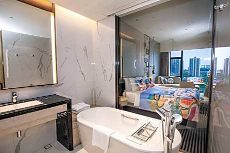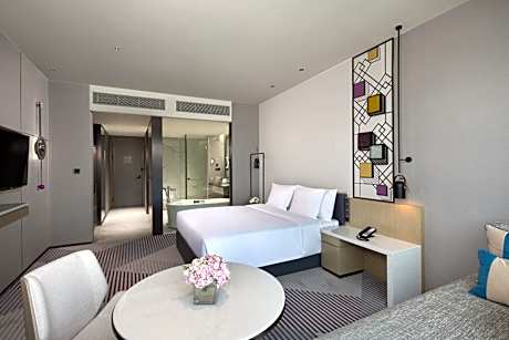 At Crowne Plaza Foshan Nanhai-an IHG Hotel-Guangzhou South Railway Station Free Shuttle Bus, exceptional service and top-notch amenities create a memorable experience for guests.Complimentary internet access is available in the hotel to ensure you stay connected during your visit.Arrange your trips to and from the airport using the hotel's convenient transportation services booking. Discover the wonders of Foshan with ease by utilizing the services provided by taxi, car hire and shuttle.Complimentary parking is available for guests.Continuously receive the support you require through front desk amenities such as concierge service, express check-in or check-out, luggage storage and safety deposit boxes.At the hotel, their tours can even assist you in booking tickets and securing reservations for leisure activities and adventures.Craving relaxation? In-room amenities such as 24-hour room service, room service and daily housekeeping allow you to maximize your time spent inside the room. For the health and well-being of all guests and staff, smoking is restricted exclusively to assigned zones. Accommodations come equipped with all the conveniences required for a restful night's slumber.A selection of rooms feature linen service, blackout curtains and air conditioning to ensure your comfort and convenience.A few accommodations at Crowne Plaza Foshan Nanhai-an IHG Hotel-Guangzhou South Railway Station Free Shuttle Bus also include unique design elements like a separate living room. A few chosen rooms are equipped with television and cable TV to ensure guest amusement. In certain rooms, the hotel offers visitors access to a refrigerator, a coffee or tea maker, bottled water, instant coffee, instant tea and mini bar.Crowne Plaza Foshan Nanhai-an IHG Hotel-Guangzhou South Railway Station Free Shuttle Bus offers a hair dryer, toiletries, bathrobes and towels in the restrooms of specific accommodations.An additional advantage for guests is the executive lounge, which offers an outstandingly cozy and excellently furnished environment for relaxation. A delightful breakfast is the perfect way to begin your day, and at Crowne Plaza Foshan Nanhai-an IHG Hotel-Guangzhou South Railway Station Free Shuttle Bus, you can always indulge in a scrumptious meal on-site. All adore a delightful cup of coffee! An on-site coffee shop ensures you can relish a cup of authentic, freshly-brewed coffee every morning -- or whenever you desire it.Allow your journey to be free from the pangs of hunger! On-site eateries offer delicious and accessible meal choices.At Crowne Plaza Foshan Nanhai-an IHG Hotel-Guangzhou South Railway Station Free Shuttle Bus, guests with diverse dietary needs are accommodated by offering options like halal among the different types of cuisine.An evening spent at hotel's bar can offer as much enjoyment as venturing out with your fellow travelers.At Crowne Plaza Foshan Nanhai-an IHG Hotel-Guangzhou South Railway Station Free Shuttle Bus, experience the ease of having groceries brought straight to your accommodation through their efficient service. Are you inclined to prepare your own dishes? You will surely appreciate having the on-site BBQ facilities available. At Crowne Plaza Foshan Nanhai-an IHG Hotel-Guangzhou South Railway Station Free Shuttle Bus, guests can take pleasure in the delightful recreational amenities provided for their entertainment. Conclude your days in complete tranquility by paying a visit to massage, hot tub, steam room, spa and sauna for ultimate relaxation. At Crowne Plaza Foshan Nanhai-an IHG Hotel-Guangzhou South Railway Station Free Shuttle Bus, a wide array of amenities guarantees a fulfilling experience throughout your visit. Make your holiday truly memorable by taking a rejuvenating plunge into the pool. At the hotel fitness center, you have the option to engage in your daily exercise routine or simply alleviate your jet lag by breaking a sweat.