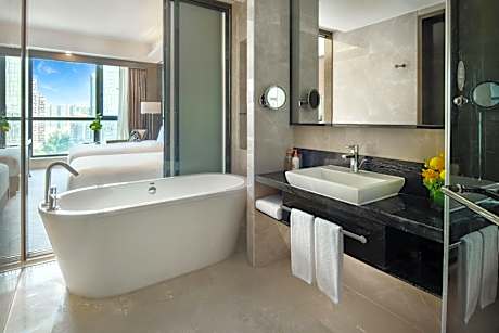 Experience an abundance of unparalleled facilities and features at Crowne Plaza Shenzhen Longgang City Centre By IHG.Share your photos and respond to emails at your convenience, thanks to the free Wi-Fi internet access offered by hotel. Should you require transportation to or from the airport, hotel is able to organize it prior to your arrival date. Taxi and car hire offerings at the hotel simplify arranging your excursions, explorations, and additional activities in Shenzhen. Visitors can take advantage of complimentary parking directly at the hotel.Reception services such as concierge service, luggage storage and safety deposit boxes are available to accommodate your requirements.Should you desire access to the top entertainment in the city, assistance can be provided by the hotel's ticket service. Traveling with minimal baggage is achievable at Crowne Plaza Shenzhen Longgang City Centre By IHG, as the hotel's dry cleaning service and laundry service ensures your garments stay fresh.Room amenities like 24-hour room service, room service and daily housekeeping contribute to making a perfect selection for your stay.Minor items you neglected to bring won't cause major issues! Simply visit convenience stores to acquire what's necessary. The hotel maintains a completely smoke-free zone, providing a breathable atmosphere.Each accommodation at Crowne Plaza Shenzhen Longgang City Centre By IHG is thoughtfully created and adorned to provide visitors with a comfortable, home-like atmosphere.In certain rooms, the hotel offers linen service, blackout curtains and air conditioning for guest convenience and satisfaction.At Crowne Plaza Shenzhen Longgang City Centre By IHG, the uniquely tailored rooms provide a configuration choice resembling a separate living room.In select rooms, guests at the hotel can enjoy top-notch in-room entertainment with daily newspaper, television and cable TV available for their convenience. Rest assured, in a few chosen rooms, you will find the convenience of a refrigerator, bottled water, a coffee or tea maker, instant coffee, instant tea and mini bar at your disposal. Maintain your cleanliness and comfort using a hair dryer, toiletries and bathrobes available in select guest restrooms. Embark on your holiday experience in the most ideal manner. Commence each morning of your visit with an on-site breakfast.Should you prefer not to venture out for a meal, the enticing culinary choices at hotel are always available for your satisfaction. No matter your specific dietary needs, rest assured that Crowne Plaza Shenzhen Longgang City Centre provides an array of kosher choices to ensure your dining experience is nothing short of delightful. Experience an unforgettable evening with your fellow travelers just a short distance away, at hotel's bar. Indulge in the numerous pursuits available at Crowne Plaza Shenzhen Longgang City Centre.Unwind after your day by exploring the steam room and find warmth and relaxation.Each day at hotel, immerse yourself in the invigorating waters of the pool, perfect for a rejuvenating plunge or a series of revitalizing laps.For individuals who don't want to skip their exercise routine, visiting the hotel fitness center ensures you maintain your vitality and wellness.
