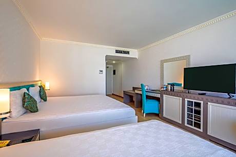 Set on a 164 ft² area, Crystal Sunrise features a 150-yards-long private beach and ultra all-inclusive accommodations in Side. Boasting an aqua park with 5 slides, Crystal Sunrise has 6 outdoor and 1 indoor pool. Wide range of treatments are offered at the 2625 ft² spa center. Free WiFi and free private parking are also offered on site. All rooms are air-conditioned and offer a flat-screen TV, a well-stocked mini-bar and a comfortable sofa in the seating area. Halikarnas Restaurant serves seafood cuisine while local dishes are served in the Ehl-i Keyf Restaurant. La Casita serves Mexican cuisine. Cocktails and regional specialties such as gozleme are served at the terrace bar. At Crystal Sunrise Queen Luxury Resort and Spa, guests can enjoy water-based activities such as surfing, canoeing and parasailing. For younger guests, there is a playground, kids club and a games room. Crystal Sunrise Queen Luxury Resort is a 5-minute drive from both Side Theater and the Temple of Apollo. Antalya International Airport is 34 mi away.