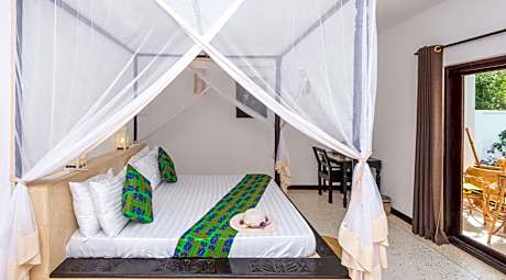 Located in Jambiani, a few steps from Paje Beach, Daima Villas provides accommodations with an outdoor swimming pool, free private parking, a garden and a shared lounge. With a terrace, the 2-star hotel has air-conditioned rooms with free WiFi, each with a private bathroom. The property has room service, a concierge service and organizing tours for guests. At the hotel, rooms come with a desk. Each room comes with an electric tea pot, while selected rooms are equipped with a kitchen with a fridge, a minibar and a stovetop. Guest rooms include a safety deposit box. Breakfast is available, and includes à la carte, continental and vegetarian options. At Daima Villas you'll find a restaurant serving African, Italian and Mediterranean cuisine. A vegetarian option can also be requested. The area is popular for cycling, and car rental is available at the accommodation. Jozani Chwaka Bay National Park is 24 miles from Daima Villas.