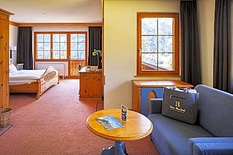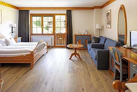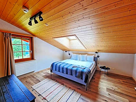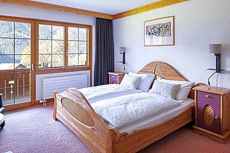 The hotel is 1969 feet from the First Cable Car Station and lies 328 ft above the center of Grindelwald. Its rooms and sun terrace have magnificent views of the surrounding scenery. It also features a unique spa area in the goats' stable. Guests can dine in Hotel Bodmi’s restaurant, which serves home-cooked food. A buffet breakfast is available in the morning, and guests can eat outdoors to enjoy the picturesque views. Guests can also enjoy an aromatic steam bath, and a shower with perfumed ice fog or warm thunderstorm rain settings. The spa area is located in the goats' stable and you can watch the goats through windows.