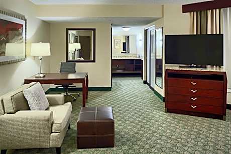 This San Antonio, Texas hotel offers on-site dining at the Ventana's Bistro. The San Antonio River Walk is within walking distance of the hotel. Guest rooms at the Doubletree Hotel San Antonio Downtown offer a coffee maker and a work desk. The rooms also feature in-room movies. A fitness room is on-site at the San Antonio Downtown Doubletree Hotel. The hotel offers room service and dry-cleaning services along with baggage storage. The University of Texas at San Antonio is a short walk from the Doubletree Hotel San Antonio. Lackland Air Force Base is a short drive from the hotel.