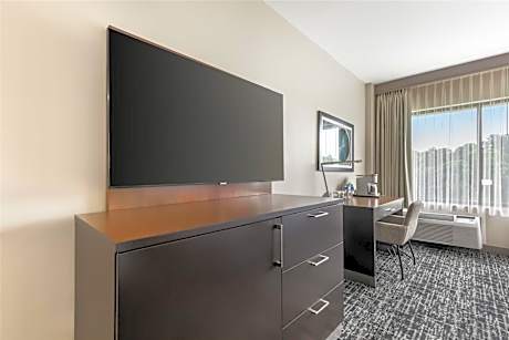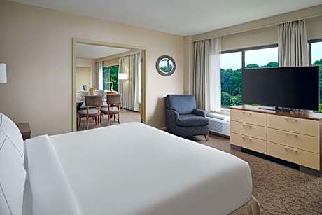 Located just 1 mile from Busch Gardens Amusement Park, this Williamsburg hotel features both an indoor and an outdoor swimming pool. Three dining options are also available on-site. Each guest room at the Doubletree by Hilton Williamsburg features a flat-screen cable TV, free Wi-Fi access and a desk. They also have a refrigerator. Guests can work out at the fitness center. Tennis courts are also available for use. Enjoy a hearty American breakfast at the Harvest Grille, or dine at Pitchers Lounge for a casual lunch and dinner. The Williamsburg Cafe has a variety of grab-and-go options. Water Country USA Amusement Park is 10 minutes’ drive from the Doubletree Williamsburg. Historic Colonial Williamsburg is 5 miles away.