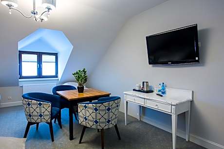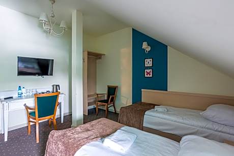 Dworek Jabłonna in Lublin provides accommodations with a garden, a bar, and a shared lounge. This bed and breakfast offers free private parking and private check-in and check-out. On clear days, guests can head outside to enjoy the bed and breakfast's outdoor fireplace, or simply kick back and relax. All units feature air conditioning and a flat-screen TV. The rooms have a kettle, a private bathroom, and free Wifi, while some rooms also offer a balcony and some have garden views. At the bed and breakfast, the units have bed linen and towels. Guests at the bed and breakfast can enjoy a buffet breakfast. Guests may go to the family-friendly restaurant, while packed lunches are also available. Outdoor play equipment is also available at Dworek Jabłonna, while guests can also relax on the sun terrace. Lublin Train Station is 10 miles from the accommodation, while Lublin International Fairs is 10 miles from the property. Lublin Airport is 17 miles away.