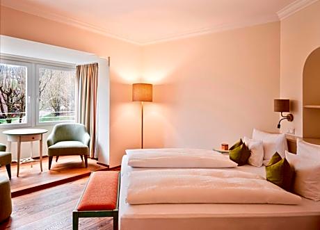 This elegant, child-friendly and family-run holiday resort offers a fantastic location right at the shore of picturesque Lake Fuschl in the Salzkammergut, only a 20-minute drive from Salzburg. Waldhof Fuschlsee Resort features a beautiful spa area, which stretches over more than 13 ft², and a wide range of sports and leisure options. The large, new outdoor pool offers unobstructed views over the lake and guests can benefit from a private beach. Row boats and stand up paddles are also available. Three restaurants, awarded several times and serving gourmet cuisine, are on site. Half board includes a breakfast buffet, a small lunch, a 5-course dinner as well as cakes and a snack in the afternoon. As an “Alpine Wellness” hotel, the Waldhof uses local medicinal plants and herbs in the kitchen as well as in the spa area. Beauty treatments and massages can be arranged against surcharge. A fitness center can be used free of charge. For children there are in- and outdoor playgrounds, horse stables with ponies, archery course, while child care service with entertaining programs can be arranged as well. Waldhof Fuschlsee Resort is the ideal starting point for excursions into the beautiful landscape of the Salzkammergut, as well as to the nearby city of Salzburg.1car can be rented at the hotel. In summer, water sports, hiking, mountain biking can be enjoyed and in winter ski lovers can have fun on the slopes, go snow tubing, cross country skiing and alpine skiing. Furthermore, you can practice tennis or golf on the on-site courts. A 9-hole golf course with PAR 62 and golf school is available on site and 10 golf courts can be found nearby.