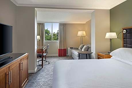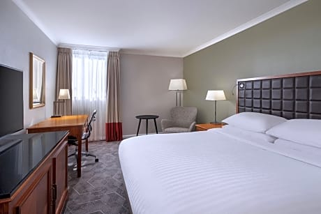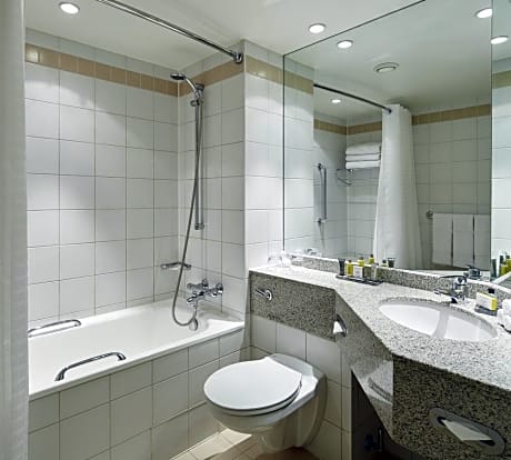 Delta Hotels by Marriott Edinburgh features a luxury leisure club where guests can relax in the sauna, steam room or whirlpool. In addition, there is an indoor heated 49 foot pool, a fully equipped gym and treatment room. Delta Hotels by Marriott Edinburgh has a wonderful location in the Scottish capital. Whether you're traveling for business or pleasure, you'll love being close to Edinburgh Airport and the city's top attractions such as the amazing Edinburgh Zoo, which is only a 5-minute drive away, or the historic Edinburgh Castle and the vibrant city center which are 4 miles from the hotel and easily accessible with regular connections from the bus stop outside. Plus, the hotel is a short distance from Murrayfield Stadium, making it an ideal choice for rugby fans and event-goers. The 4-star bedrooms at Delta Hotels by Marriott Edinburgh are designed to provide you with comfort, space and a premium night sleep. The deluxe double/double rooms are perfect for families and the suites are ideal for anyone who needs some extra living space. Guest bedrooms feature premium bedding and towels as well as upgraded showers to keep you energized and complimentary Wi-Fi. The stylish designed Cast Iron Grill restaurant offers freshly made British cuisine, serving delicious seasonal dishes made with locally sourced ingredients. You’ll love the selection of mouth-watering starters and mains, as well as the salads and freshly baked bread. And don't forget to save room for one of the decadent desserts. The Brew Bar Lounge has a fantastic range of beers, spirits and serves classic cocktails as well as afternoon teas. Boasting a beautiful terrace outside to make the perfect setting for a coffee or an evening drink while socializing with friends or family. On-site parking is available.