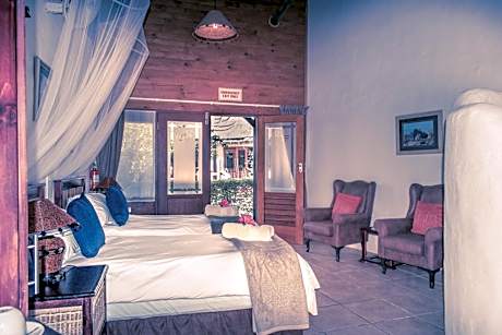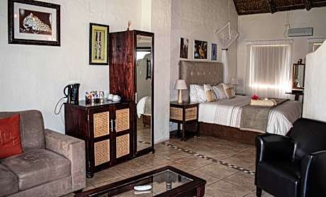 It provides African décor, cotton linen and a seating area with leather sofa. The private bathroom is partially closed off from the room and includes a large bath and free, environmentally-friendly toiletries.