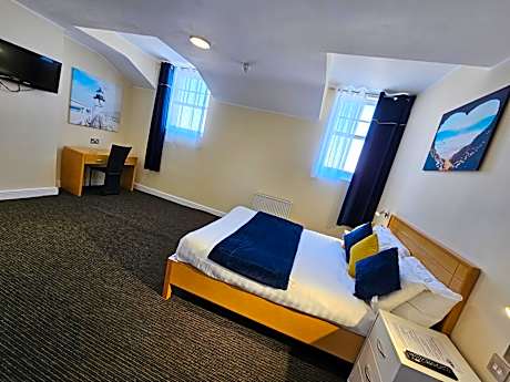 Double room sea view -room with king bed, the size of the bed is 55 in wide and 75 in long. You can ask for a room with a shower or a bathtub according to your preferences, and we will check for you which rooms are left that meet your requirements. The room is small, but it has a wardrobe, desk, stool or chair, television, armchairs, and coffee table carpeted floor. This room is located with a sea view from where you can watch the sea, sunrise or sunset, Llandudno pier, Palm Trees, and the Main Promenade Stunning Views. Toiletries and towels are included in the price. Daily Housekeeping service is provided to refresh your room during your stay. Continental Breakfast is served daily from 9 a.m.-10 a.m, and is FREE of charge.