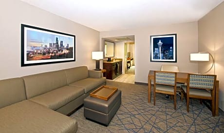 Conveniently located near a number of shopping centers, and only a short drive from Seattle city centre, this all-suite hotel features spacious accommodation along with many modern on-site facilities. In the area surrounding the Embassy Suites Seattle-North/Lynnwood, guests can discover Alderwood Mall shopping centre and Lynnwood Municipal Golf Course. The Lynnwood Convention Center as well as the Shoreline Conference Center is also nearby. Guestrooms at the Seattle-North/Lynnwood Embassy Suites are furnished with microwaves, refrigerators and wireless internet access. Guests at the hotel can also enjoy the on-site fitness centre as well as the hotel's activity and leisure desk.
