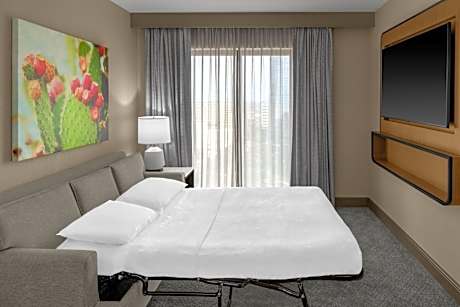 Offering a year-round outdoor pool and views of the river, Embassy Suites San Antonio Riverwalk-Downtown is located in the Downtown - Riverwalk district in San Antonio. The hotel has a sun terrace, and guests can enjoy a meal at the restaurant. Free WiFi is featured and private parking is available on site. Each room at this hotel is air conditioned and comes with a flat-screen TV with satellite channels. Some rooms feature a seating area where you can relax. Each room has a private bathroom. For your comfort, you will find free toiletries and a hairdryer. You will find a 24-hour front desk at the property. The River Walk is 1640 feet from Embassy Suites Riverwalk-Downtown, while The Alamo is 2297 feet from the property. San Antonio International Airport is 7.5 mi away.