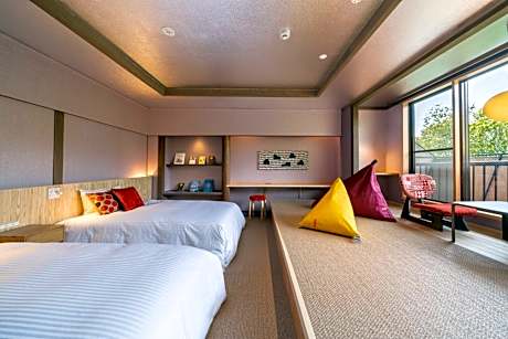 The air-conditioned family room provides a flat-screen TV with streaming services, a tea and coffee maker, a safe deposit box, yukata as well as river views. The unit offers 2 beds and 2 futons.