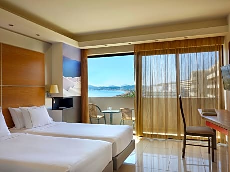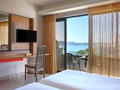 Esperos Mare Resort & Spa Hotel is located on the beach of Faliraki Bay. It features an outdoor pool, restaurants, bars and a spa and wellness center. Modern guestrooms enjoy side or full views of the Aegean Sea. Tastefully decorated in soft earth tones, rooms at Esperos Mare Resort & Spa open out to a balcony. Each comes with a satellite TV, radio, safe and mini fridge. Fitted with a marble counter, the bathroom includes toiletries and hairdryer. Mira Mare Restaurant serves an American Breakfast and specializes in international and Greek cuisine.There is a Pizza station and also you will find Casual Grill specializing in grilled meat. Kafenion restaurant serves Greek hot and cold meze. Sporting and leisure activities at Esperos Mare Resort & Spa include tennis courts, mini golf course, a lazy river, Garden-Chess, fitness room, sauna. Free WiFi is available in public areas and water sports are accessible on the beach. Guests can use the spa facilities of the sister property, located at 164 feet. Water Park is located within walking distance from the hotel. A bus stop is located in front of Esperos Mare Resort & Spa Hotel with an ATM located right next to it. Kallithea Town is 1.9 mi away and Rhodes Old Town is 6.8 mi away. Free private parking can be found nearby. License Number(s): 1476K014A0265500