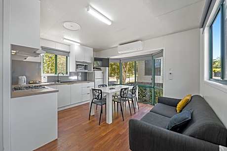 Located next to the historic Eureka Stockade monument and reserve, this holiday park features access to a large, seasonal (November to April), outdoor, heated pool, located next door. Free on-site parking and free WiFi are provided. The air-conditioned accommodations options offer a fully equipped kitchen. Eureka Stockade Holiday Park is 2 minutes' walk from M.A.D.E - from the Museum of Australian Democracy (M.A.D.E). It is 5 minutes' drive from Ballarat Wildlife Park and Sovereign Hill. Kryal Castle is 8 minutes' drive away, Each of the villas and cottages feature a dining setting and a lounge area with a flat-screen TV and DVD player. Some accommodations offers a balcony. All accommodations includes a private bathroom with a shower, hairdryer and towels. At Eureka Stockade Holiday Park you will find a garden, BBQ facilities and a shared kitchen. Guests enjoy a games room. The property offers free parking.
