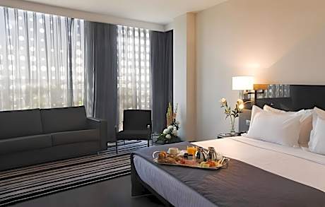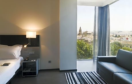 On Paseo de la Victoria, in the center of Córdoba, Eurostars Palace is a modern hotel that features a seasonal rooftop swimming pool with a terrace and lounge chairs. Each air-conditioned room has free Wi-Fi, a sofa, satellite TV and a minibar. The private bathrooms include a spa tub, free toiletries and a hairdryer. International dishes are served in the hotel's restaurant, as well as traditional Cordoban cuisine with a modern twist. Eurostars Palace has a fitness center, providing free bottles of water for guests. The hotel is located a 5-minute walk from the famous Mezquita and the Jewish quarter of La Judería. The AVE train station and bus station are just under half a mile away.
