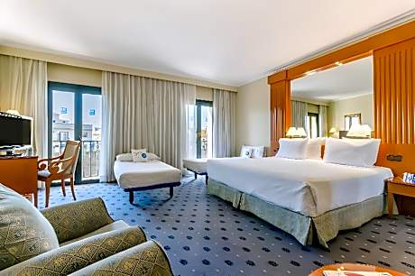 Located opposite the Macarena Basilica, Hotel Sevilla Macarena faces Seville’s ancient city walls. It offers a rooftop pool with panoramic city views, and air-conditioned rooms with flat-screen a satellite TV, mini-bar and a safe. The hotel is set around a characteristic Seville-style patio, where there is a cafeteria. The sports bar offers TV with international sports channels. The hotel offers an international breakfast buffet made from a range of quality ingredients. The hotel has 24-hour reception. The tour desk can provide information about the surrounding area, as well as book tickets for guided tours and live shows. The hotel offers a free shuttle service to the Seville Fair. Hotel Sevilla Macarena is set 1640 feet from the Guadalquivir River, and Isla Mágica Theme Park is just across the river. Seville Cathedral is a 20-minute walk away. Guests will find a taxi rank just outside the hotel, as well as numerous bus stops for getting around the city. Seville Airport can be reach in 17 minutes by car.