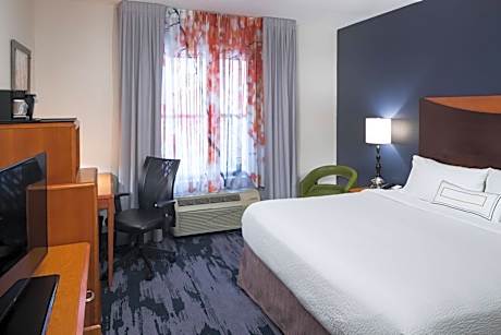 Fairfield Inn Suites by Marriott Orlando At SeaWorld is a 3 minutes' drive from Sea World. Guests can enjoy a continental breakfast every morning. The property is 1.9 mi from the Orange County Convention Center. Complimentary WiFi is provided for all guests. A cable TV and microwave are featured in each room at the Fairfield Inn Suites Orlando At SeaWorld. An outdoor pool with a children's play area is offered. The Fairfield Inn Suites also has a gym which includes treadmills and elliptical machines. For lunch and dinner, there is the Splash Zone Bar & Grill, which offers a casual dining experience. The Aquatica Water Park is a 3 minutes' drive away. Orlando International Airport is a 12 mi drive from the Fairfield Inn Suites by Marriott Orlando At SeaWorld .
