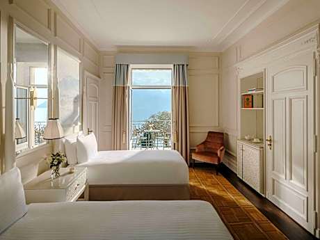 Fairmont Le Montreux Palace, 'The Pearl of the Swiss Riviera', is located on the shores of Lake Geneva with magnificent views of the lake and the Alps. Built in 1906, the Fairmont hotel offers a traditional and elegant atmosphere combined with the latest technology. Featuring refined yet relaxed dining spaces, MP’S Bar & Grill includes an outdoor terrace and a cocktail bar. The menu reflects a passionate faith in the finest local produce including the regions best wines. Offering simple, gourmet food coupled with and an unpretentious atmosphere, Funky Claude’s Bar is a great place to drop by or hang out late into the night. The Lounge offers a light breakfast selection, snacks during the day and pre-dinner drinks in the evening. And in summer La Terrasse du Petit Palais offers a Mediterranean cuisine with a breathtaking view over the Lake and the Alps. The in-room dining service is available 24 hours a day. The breakfast buffet is served in the winter garden, offering great views over the Lake Geneva and the Alps. A small terrace is available during summer. Enjoy the fitness, health and wellness facilities in the 6562 ft² Fairmont Spa. Access to the Fairmont Spa is included in the room rate. It offers an indoor swimming pool, a hot tub, fitness room, sauna and hammam. In the summer time, the outdoor pool invites you for a swim, while the large garden is the right place to relax. An extensive program of massages as well as face and body treatments are available (at additional charge). Located in the heart of Montreux, the position of Fairmont Le Montreux Palace is an excellent starting point for any excursions, eg. to the Chillon Castle, to various museums, the village of Vevey or to the close-by mountains.