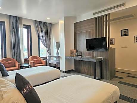 Family Boutique Hotel offers top-notch services and amenities, ensuring guests experience utmost comfort.Remain linked during your visit by utilizing the complimentary internet access available. Prior to your check-in date, you can arrange airport transportation services, guaranteeing a seamless and efficient experience for both arrival and departure. Services offered by taxi and car hire at the hotel ensure effortless exploration of Vientiane. The hotel offers complimentary parking for guests who arrive with their own mode of transport.Effortlessly plan your daily activities and travel requirements with concierge service, luggage storage and safety deposit boxes provided by the front desk services.Securing passes to the city's top attractions is simple with the hotel's ticket service and tours.For extended visits or whenever required, the dry cleaning service and laundry service ensures your preferred travel garments remain clean and accessible.During leisurely days and evenings, in-room amenities such as room service and daily housekeeping enable you to maximize your stay in the room. Crafted for coziness, every guestroom provides an array of features, guaranteeing a tranquil night's sleep while maintaining the level of comfort. For a more enjoyable stay, select rooms at hotel are equipped with linen service and air conditioning. At Family Boutique Hotel, a selection of rooms can be found that showcase unique design elements such as a balcony or terrace. For certain chosen rooms, guests can enjoy in-room amusement like daily newspaper, television and cable TV as a part of their stay. Rest assured that your hydration needs will be met, as some guestrooms are equipped with a refrigerator, a coffee or tea maker, bottled water, instant coffee, instant tea and mini bar. It is worth noting that certain guest bathrooms feature a hair dryer, toiletries, bathrobes and towels for your convenience.