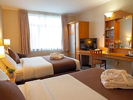 This modern hotel is on the A386, 5 miles from Plymouth city center. It has free parking, free internet, an exercise room, and air-conditioned bedrooms with free local calls. Guests at the Future Inn Plymouth can enjoy a cooked breakfast in the morning. There are vending and ice machines, and the onsite restaurant and bar offer modern British food. The Future Inn's large rooms have a hairdryer, work desk, and facilities for making tea and coffee. Each also has a flat-screen TV, and free internet access. Each room has 2 double beds or one double bed and a sofa bed. Rooms can accommodate up to 4 people (at an additional cost). The hotel is 1 mile north of the A38 and just off one of the main roads into Plymouth. The city’s airport is just a 5-minute drive away. The Future Inn Plymouth does not accept payment in cash.
