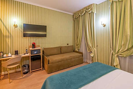 Hotel Gambrinus położony jest w cichej, mieszkalnej dzielnicy w pobliżu Porta Pia, zaledwie 15 minut spacerem od Schodów Hiszpańskich i Via Veneto. Urocze i eleganckie pokoje oferują bezpłatne Wi-Fi. Obsługa jest spersonalizowana. Pokoje urządzone są w czterech różnych stylach i dominujących kolorach: czerwonym, beżowym, zielonym i żółtym. Każdy z nich wyposażony jest w telewizor LCD z kanałami satelitarnymi i pay-per-view oraz czajnik z wyborem herbat i kaw. Piękna sala śniadaniowa zachwyca oryginalnymi, XIX-wiecznymi kamiennymi sufitami i posadzkami z rzymskiego trawertynu. Codziennie serwowany jest obfity bufet, który obejmuje płatki śniadaniowe, pieczywo, ciastka, świeże owoce, jajka, sery i wędliny. Młody, wielojęzyczny personel pomoże zorganizować pobyt zgodnie z potrzebami gości. Pobliskie autobusy komunikacji miejskiej zapewniają połączenia z dworcem kolejowym Termini, Koloseum i Watykanem.