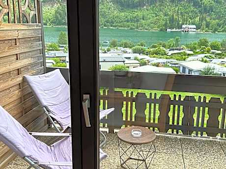 The double room features a tea and coffee maker, a wardrobe, a balcony with lake views as well as a private bathroom boasting a shower. The unit has 1 bed.