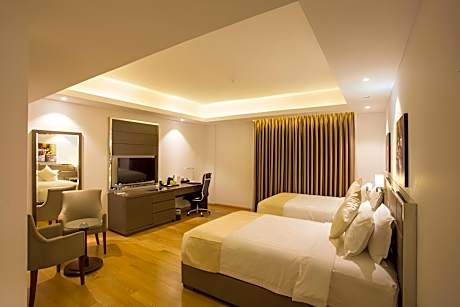 The Grandmark Dhaka provides flawless service and all the necessary facilities for visitors.Stay connected with your associates, as complimentary Wi-Fi is available during your entire visit. To facilitate your arrival and departure, you can pre-book airport transfer services prior to checking in. The hotel offers car hire and shuttle amenities for your ease in navigating around Dhaka.When arriving by car, you'll be grateful for the on-site complimentary parking at hotel. The hotel offers reception amenities including concierge service, express check-in or check-out, luggage storage and safety deposit boxes to ensure a comfortable stay for guests. Should you require it, the tours can even assist you in booking tickets and securing reservations for the finest shows and events in the vicinity. The hotel also features a fireplace, providing a cozy ambience during cool evenings.Whether it's an extended stay or simply needing fresh attire, dry cleaning service and laundry service provided by hotel ensures your cherished travel garments stay spotless and accessible. Your stay will be comfortable with the presence of room service and daily housekeeping as an in-room amenity for your relaxation and enjoyment. To ensure the well-being and convenience of all visitors, smoking is strictly prohibited throughout the entire hotel.Smoking is permitted solely in the specified smoking zones allocated by hotel. In order to ensure the utmost level of relaxation, the guestrooms feature an inviting design and are equipped with all basic necessities, creating a delightful stay experience. To ensure a pleasant stay, a selection of rooms at hotel come furnished with linen service and air conditioning, all designed with your ease in mind. In select rooms, visitors can enjoy a touch of amusement with the availability of daily newspaper, television and cable TV for their entertainment needs.Within specific rooms, bottled water, a coffee or tea maker and mini bar is conveniently available for your use.Understanding the significance of bathroom facilities in enhancing visitor contentment, hotel offers a hair dryer, toiletries and bathrobes within a few chosen chambers. Each day, arise to a delightful complimentary morning meal at The Grandmark Dhaka.How about kicking off each day of your getaway with a delicious cup of coffee? At the hotel, relish in the invigorating taste of a freshly brewed, excellent coffee. Various excellent meal offerings at hotel ensure that enticing and easily accessible options are constantly available. Upon your arrival, don't miss experiencing bar for enjoyable in-house evening entertainment. Visitors wishing to create their personal culinary delights will appreciate the on-site BBQ facilities provided at this establishment. Throughout the day, engage in the entertaining activities available at The Grandmark Dhaka.Unwind and conclude each day delightfully by stopping by massage, hot tub and spa, ensuring a soothing experience.Unwind by the pool at hotel and cherish a leisurely moment. Guests who enjoy maintaining their fitness regimen while on holiday can visit the fitness center provided by hotel.