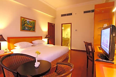 Golden View Hotel Batam provides flawless service and all the necessary facilities for visitors. Share your photos and respond to emails at your convenience, thanks to the free Wi-Fi internet access offered by hotel.Should you require transportation to or from the airport, hotel is able to organize it prior to your arrival date. Taxi, car hire and shuttle offerings at the hotel simplify arranging your excursions, explorations, and additional activities in Batam Island. Visitors can take advantage of complimentary parking directly at the hotel. Reception services such as concierge service, express check-in or check-out, luggage storage and safety deposit boxes are available to accommodate your requirements. Securing top-notch tickets and snagging sought-after dining reservations become effortless, thanks to the hotel's ticket service and tours. Relax and feel the warmth in the hotel's inviting lobby, featuring an enchanting on-site fireplace. Traveling with minimal baggage is achievable at Golden View Hotel Batam, as the hotel's dry cleaning service and laundry service ensures your garments stay fresh. Room amenities like 24-hour room service, room service and daily housekeeping contribute to making a perfect selection for your stay.The hotel maintains a completely smoke-free zone, providing a breathable atmosphere. Smoking is limited to specified smoking zones. Each accommodation at Golden View Hotel Batam is thoughtfully created and adorned to provide visitors with a comfortable, home-like atmosphere.In certain rooms, the hotel offers blackout curtains and air conditioning for guest convenience and satisfaction.In select rooms, guests at the hotel can enjoy top-notch in-room entertainment with television and cable TV available for their convenience.Rest assured, in a few chosen rooms, you will find the convenience of a refrigerator, a coffee or tea maker, bottled water and mini bar at your disposal.Maintain your cleanliness and comfort using a hair dryer, toiletries and bathrobes available in select guest restrooms. Embark on your holiday experience in the most ideal manner. Commence each morning of your visit with an on-site breakfast.Experience the delight of a fresh morning by savoring excellent coffee at the cafe situated within hotel.Should you prefer not to venture out for a meal, the enticing culinary choices at hotel are always available for your satisfaction.No matter your specific dietary needs, rest assured that Golden View Hotel Batam provides an array of halal choices to ensure your dining experience is nothing short of delightful.Experience an unforgettable evening with your fellow travelers just a short distance away, at hotel's bar.Should you be particularly discerning in your dining choices, you will surely appreciate having access to the on-site BBQ facilities provided at this location.Indulge in the numerous pursuits available at Golden View Hotel Batam.Unwind after a long day by stopping by massage, steam room, spa and sauna to rejuvenate your senses.Each day at hotel, immerse yourself in the invigorating waters of the pool, perfect for a rejuvenating plunge or a series of revitalizing laps. Bypass the formal attire and choose a laid-back mixed drink or brew at hotel's waterside lounge.For individuals who don't want to skip their exercise routine, visiting the hotel fitness center ensures you maintain your vitality and wellness.