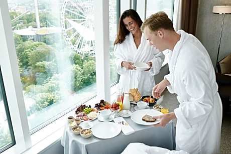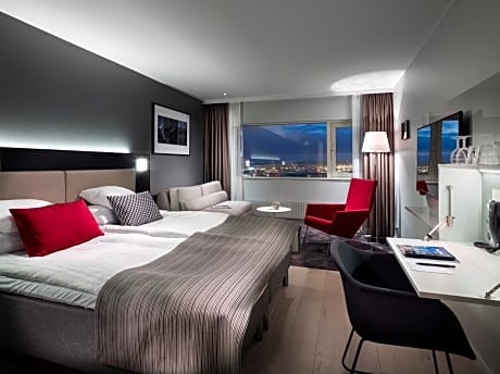 In Gothia Tower's three glittering towers, Gothia Towers & Upper House offer tastefully decorated rooms in two hotel concepts, with everything from affordable standard rooms at Gothia Towers & Upper House to the more extravagant kind at Upper House. Choose something that fits regardless of whether you are traveling on business, with family & friends or want to surprise someone with a luxurious hotel weekend. In the hotel complex, you will find not just one, but as many as four restaurants that serve a wide variation of fantastic food and beverages. The restaurants offer everything from take away sandwiches, à la carte and multi-course menus. Here, in other words, you can enjoy both breakfast and coffee as well as lunch and dinner. There are also several bars, including a sky bar on the 23rd floor with a panoramic view of the city. On the fourth floor there is a well-equipped gym for those who want to work out during their stay at the hotel. If you would rather relax and get your heart rate down, you are welcome to the exclusive spa at Upper House, located on floors 18–20. Spa offers sauna, steam room, outdoor hot tub, indoor games and Turkish hammam. You can also book a nice massage, a facial treatment, a body scrub or go to a relaxing yoga session. If you book a room at Upper House, entrance to the spa is included. If you book a room at Gothia Towers, you can book spa entrance according to availability with an additional fee If you are looking for premises for large conferences, international gatherings, banquets, fairs, smaller meetings or really any type of event, Gothia Towers & Upper House is guaranteed to have something to suit. Here there are premises and rooms for at least one up to almost nine thousand participants.