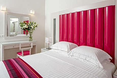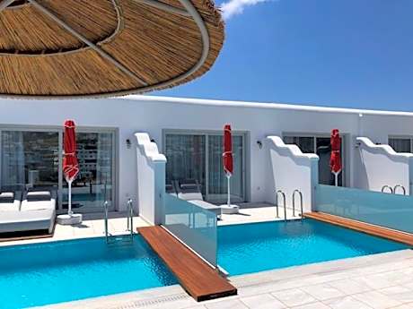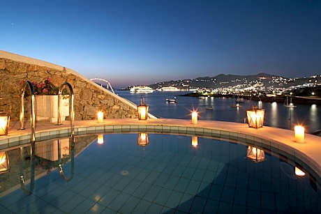 Ideally set on the sandy beach of Megali Ammos, Grand Beach Mykonos is 1312 feet from lively Mykonos Town. It features a seawater pool, and elegant accommodations with Aegean Sea views and free Wi-Fi. Stylishly decorated and air conditioned, the rooms and suites at Grand Beach come with a satellite TV, safe and fridge. Slippers, bathrobes, toiletries and a hairdryer stock the bathroom. Some feature a spa bath, private pool, seating area and flat-screen TV. Guests can begin their day looking out onto the sea while enjoying a buffet breakfast in the outdoor seating area. The restaurant prepares various meals and also provides unlimited sea views. Refreshing drinks are available at the poolside bar. The facilities at Grand Beach Mykonos include a paddling pool for kids. The 24-hour front desk can provide information regarding car rental and local tours. Private parking is available onsite at no charge. License Number(s): 1173Κ014Α0298201