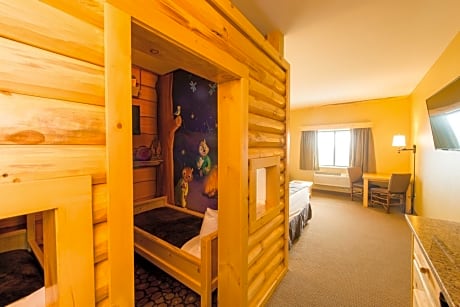 Located near Anaheim, 2.2 mi away from Disneyland, Great Wolf Lodge Southern California features an 84-degree indoor water park with 16 thrill rides and water slides. Water park passes are included in your reservation. Five restaurants are located on site. Each air-conditioned guest accommodations offers free WiFi. Each spacious accommodations comes with a flat-screen TV. Select rooms include a seating area for your convenience. Each room has a private bathroom. Specialty children rooms are also available. A 24-hour front desk, a gift shop, and a market place are available to guests. Other amenities at Great Wolf Lodge Southern California include a kid’s spa and fitness center, an XD movie theater, a bowling alley and zero-depth-entry playgrounds for small children. A lobby show and character appearances offer additional entertainment for children. Disney California Adventure is 2 mi from Great Wolf Lodge Southern California. The nearest airport is John Wayne Airport, 7.5 mi away, while Los Angeles International Airport is 34 mi away. Knott’s Berry Farm Amusement Park is 9.9 mi away.