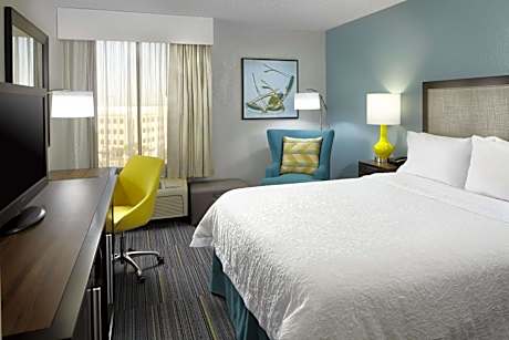 Only 1 mi from Universal Studios Florida™, this Hampton Inn Orlando Near Universal Blv/International Dr offers a daily free breakfast buffet and free WiFi. Guests will also be less than 7 minutes' drive from the Orlando International Premium Outlets and Artegon Marketplace. A microwave and a refrigerator are standard in every room. Extras include a 32-inch flat-screen TV, coffee machine, and private bathroom. An outdoor pool, fitness center, and business center are provided on site for guest convenience. Free parking is also provided. The breakfast buffet includes make-your-own waffles, pastries, and freshly brewed coffee. Guests who are in a hurry can pickup a Hampton On the Run Breakfast Bag instead Monday through Friday. Walt Disney World and SeaWorld are less than 20 minutes' drive away. The Orange County Convention Center is 4.2 mi from the Hampton Inn Orlando Near Universal Blv/International Dr.