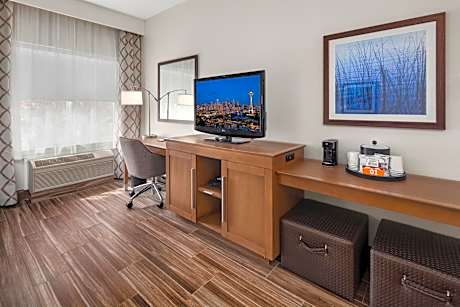 This Lynnwood hotel is located 20 minutes outside of downtown Seattle. The hotel features a 24-hour indoor pool and gym, breakfast buffet and an area shuttle within a 10-mile radius. Guest rooms at the Lynnwood Hampton Inn include a microwave, refrigerator and a coffee maker. Free Wi-Fi and cable TV with in-room movies are also provided. The Seattle North-Lynnwood Hampton Inn and Suites is within a 20-minute drive of Chateau Ste. Michelle Wineries. The Lynnwood Convention Center is less than 5 minutes from the hotel.