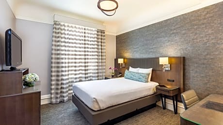This San Francisco hotel is located in Union Square, a 5-minute walk from the Powell Street cable car line. It offers an outdoor pool and rooms with an MP3 connection. Guests will also have access to an on-site fitness center and dry sauna. Each classically-designed room at the Union Square Handlery is equipped with a flat-screen cable TV and mini-refrigerator. Free coffee and tea are also provided in every room. Some rooms offer balconies with views of the city or pool. The Moscone Convention Center and The Museum of Modern Art are 5 blocks from the Handlery in San Francisco. The Aquarium of the Bay is less than 1 mile (1 mi) from the hotel.
