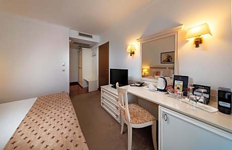 This spacious maisonette features: - a private balcony - a separate living space with a satellite TV - a mini-bar